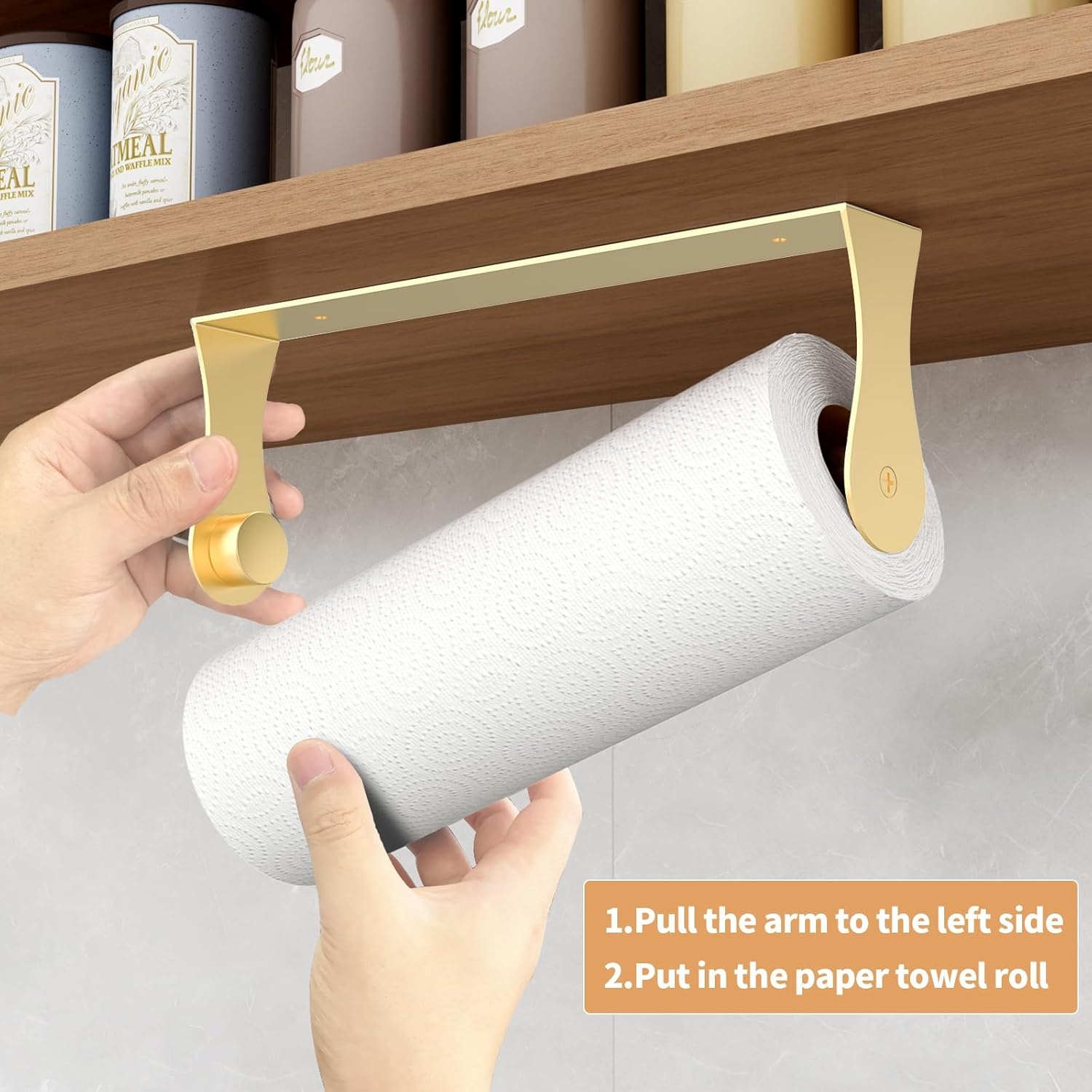 Add both elegance and functionality to your kitchen with this gold paper towel holder.